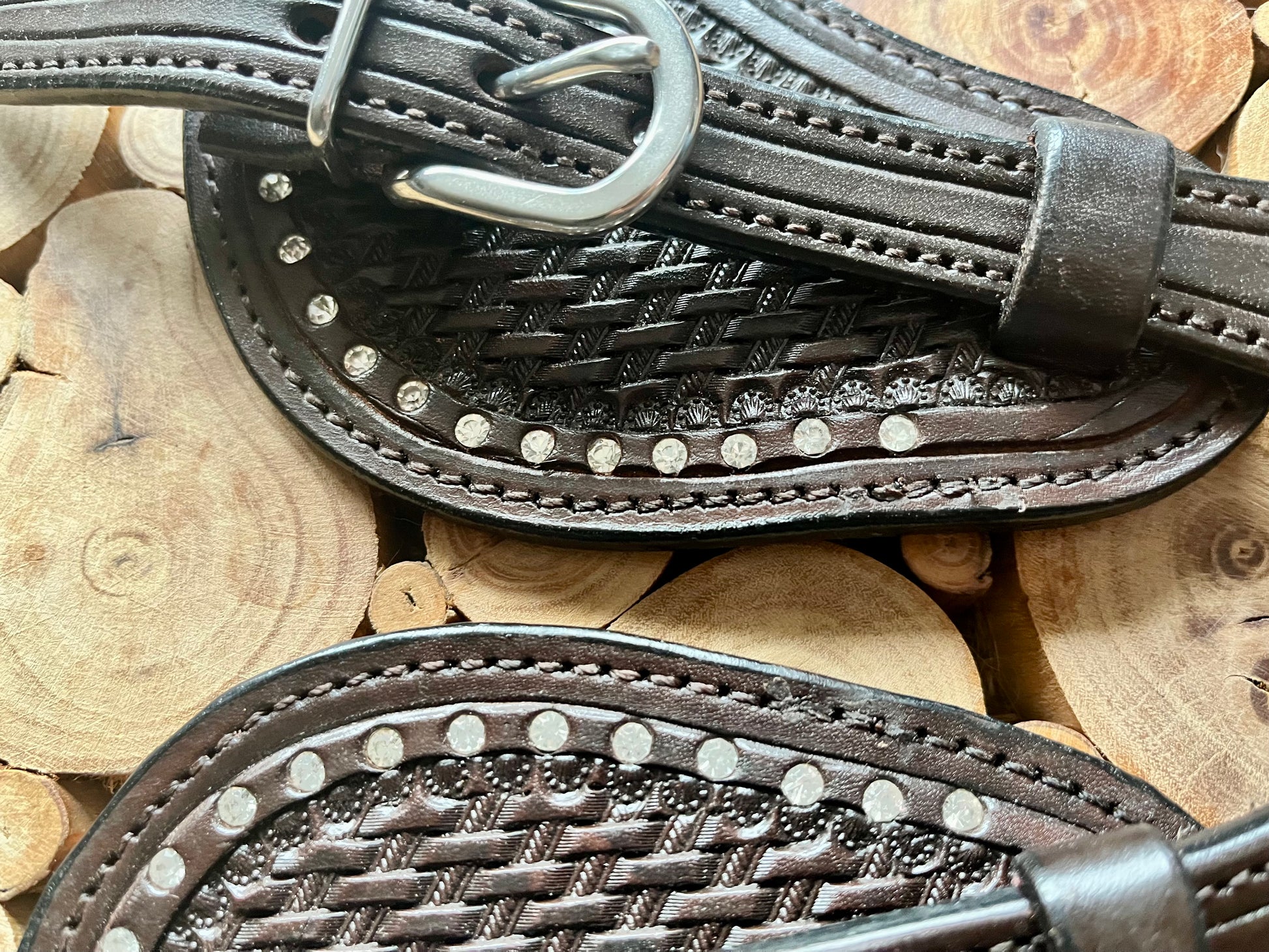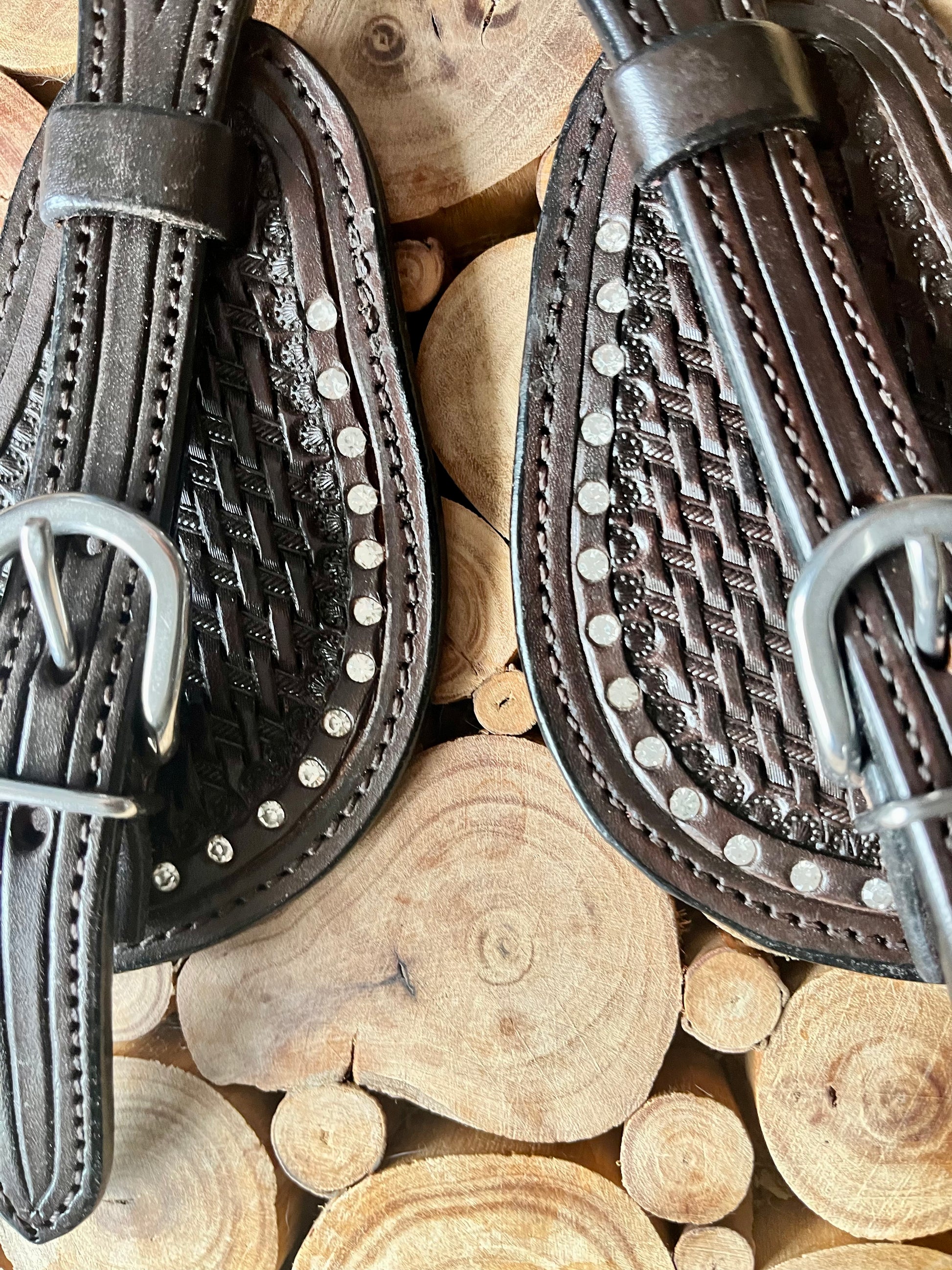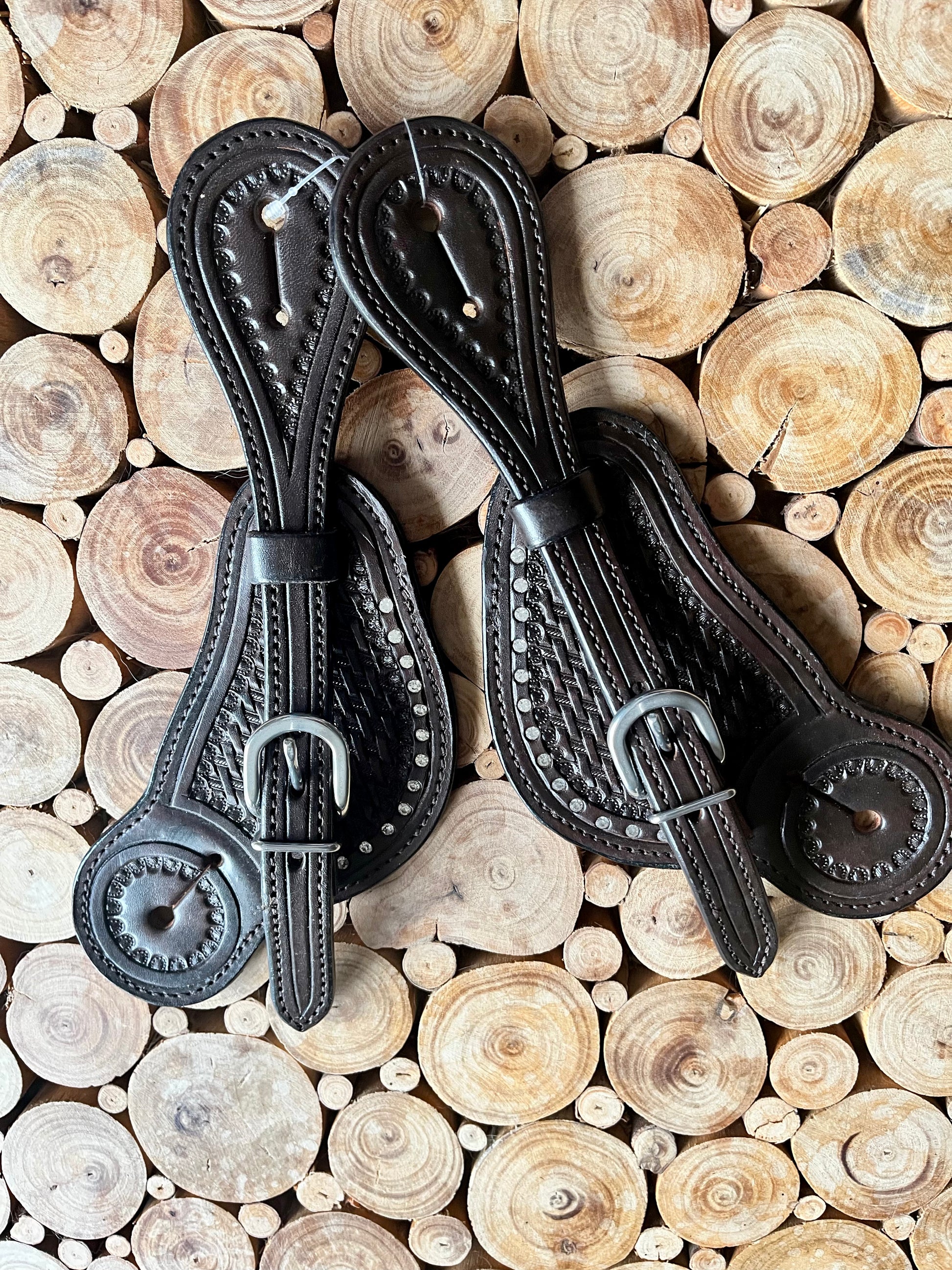 Ajoutez une touche de style à votre équipement avec ces lanières d’éperons en cuir dark oil, spécialement conçues pour allier élégance, solidité et confort. Fabriquées en cuir de haute qualité, elles présentent une finition sombre et riche très appréciée en équitation western. Les strass subtilement incrustés apportent une brillance raffinée qui sublime chaque tenue, que ce soit pour l’entraînement, les shows ou les sorties quotidiennes.