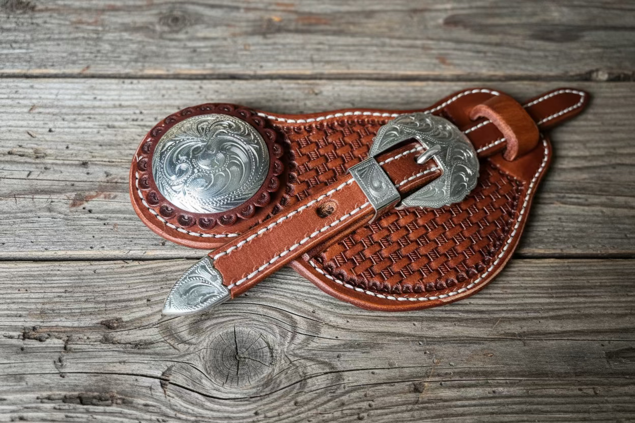 Lanières d’Éperons Homme en Cuir Premium – Motif Basket & Boucles Argentées
