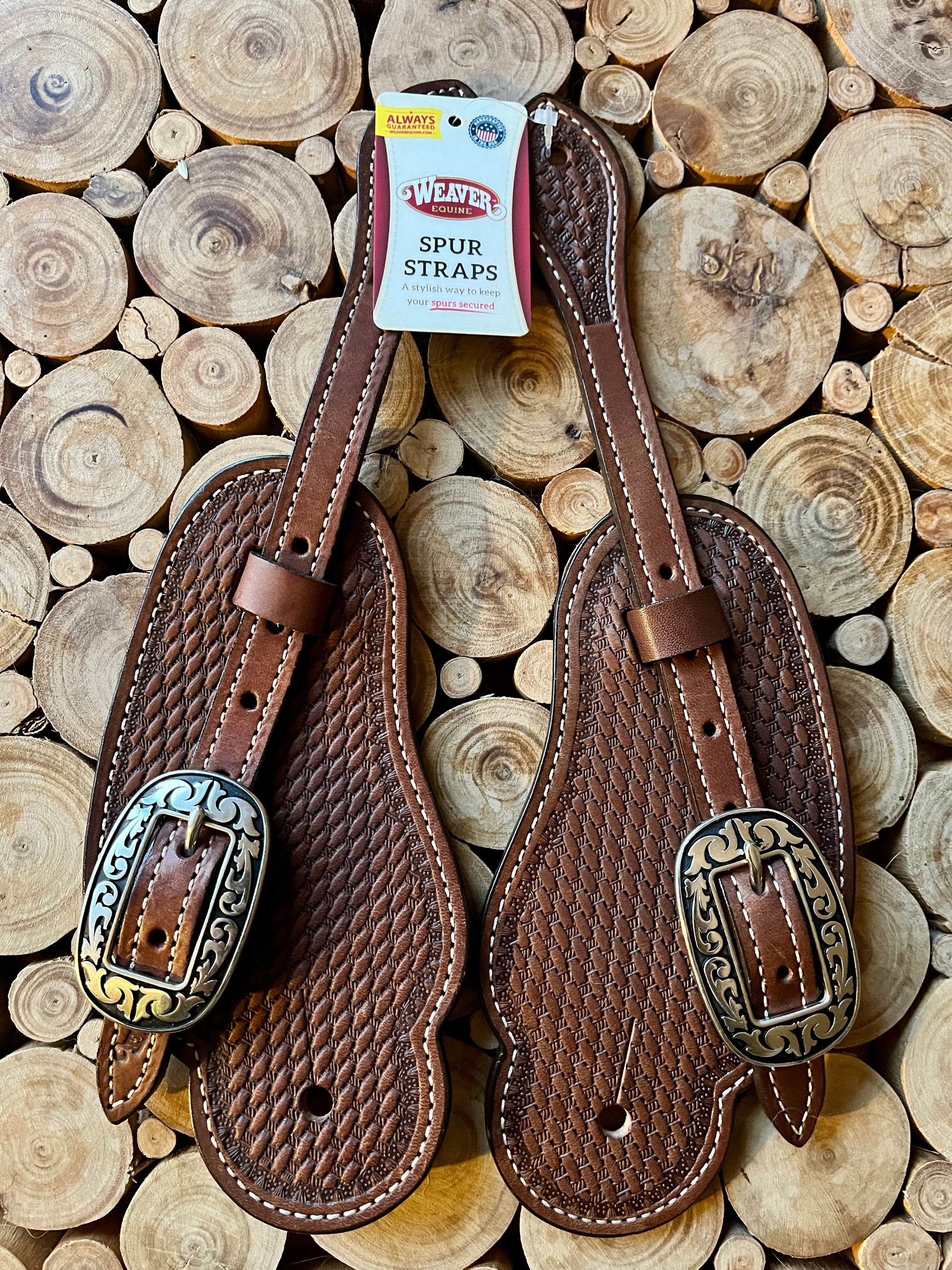 Lanières d’éperons pour hommes Weaver Leather, conçues en cuir premium avec motif basket embossé et boucles gravées Jeremiah Watt. Robustes, élégantes et parfaitement ajustables, elles offrent un style western authentique et une durabilité exceptionnelle pour le travail, l’entraînement ou la compétition. Idéales pour les cavaliers recherchant qualité, confort et finition artisanale.