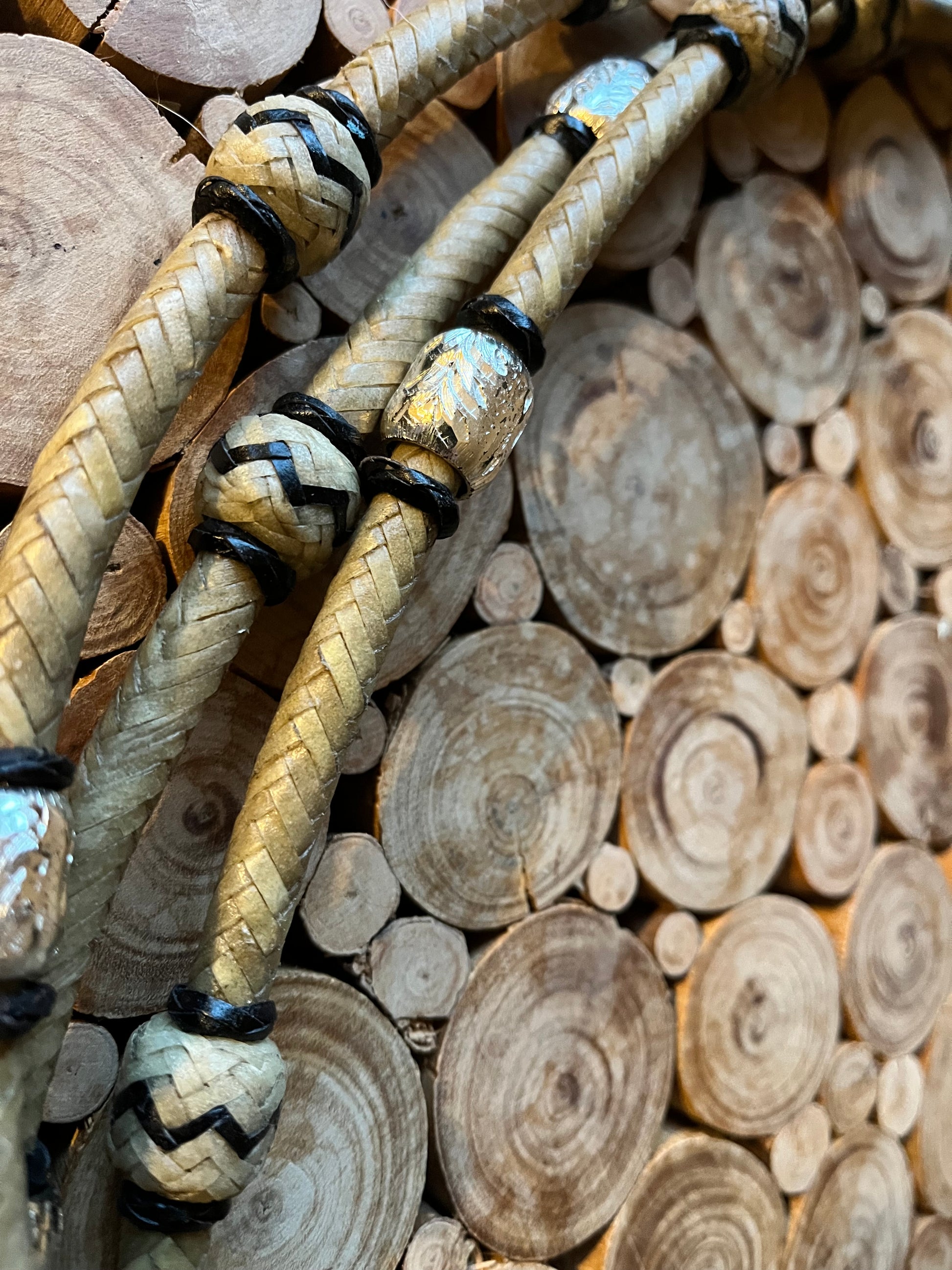 Romals de show Buckaroo en cuir brut tressé, conçues pour les cavaliers exigeants.