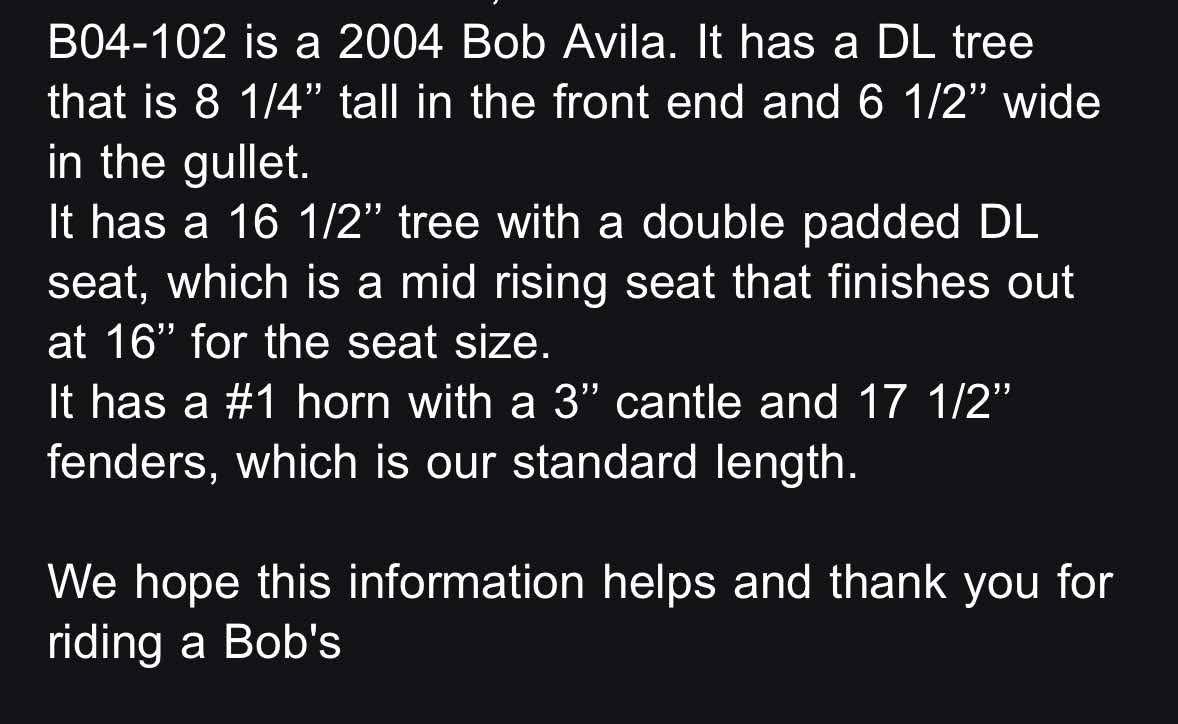 Selle western Bob Avila modèle B04-102 (2004), conçue pour offrir un équilibre optimal, un excellent maintien et le confort reconnu des selles Bob’s Custom Saddles.