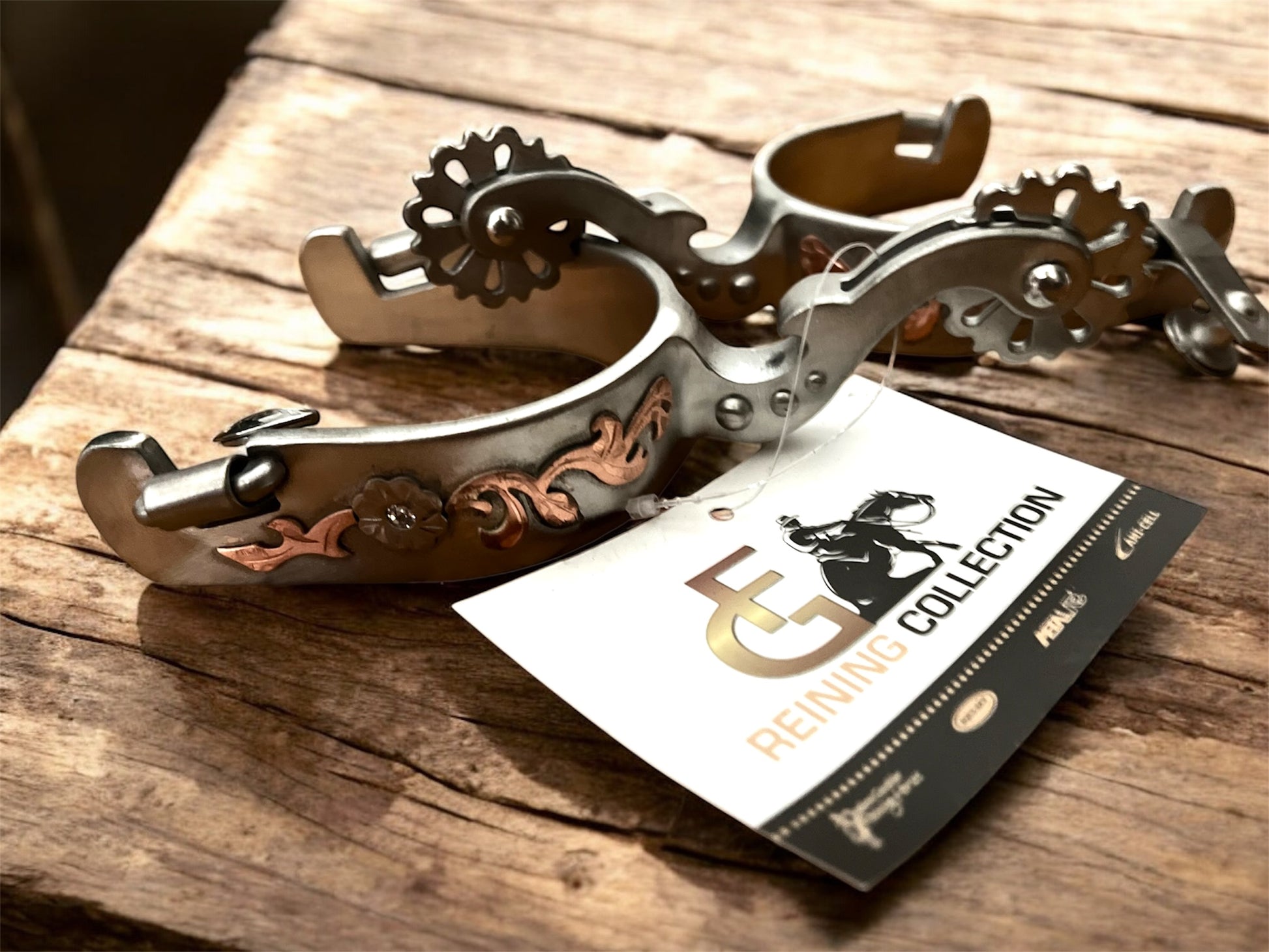 Chaque paire est ornée d’une garniture en cuivre finement travaillée et sublimée par une pierre de cristal étincelante, ajoutant une touche de noblesse à votre tenue équestre.