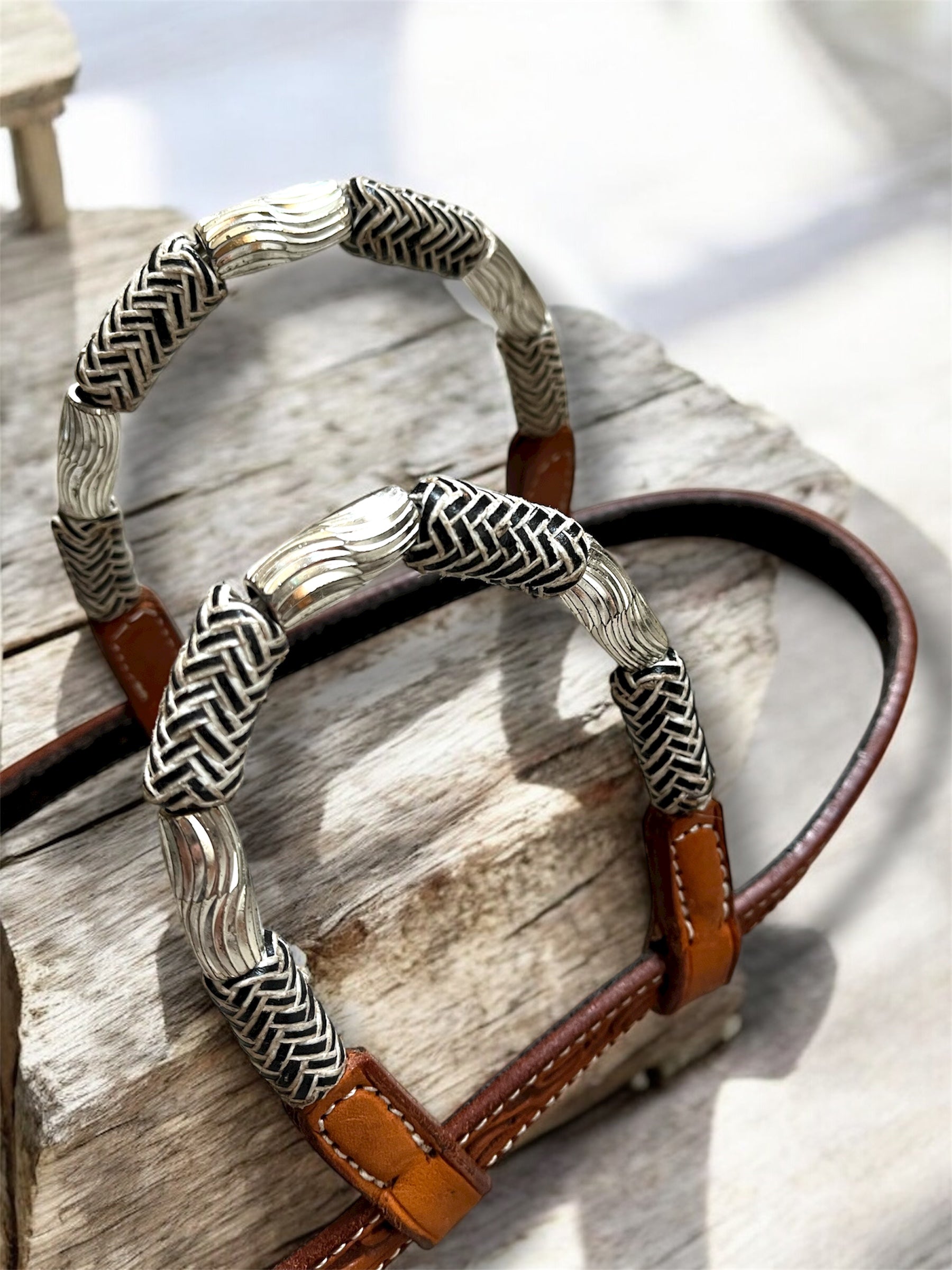 Bride de show western premium hybride – perles argentées & rawhide, passant 2 oreilles