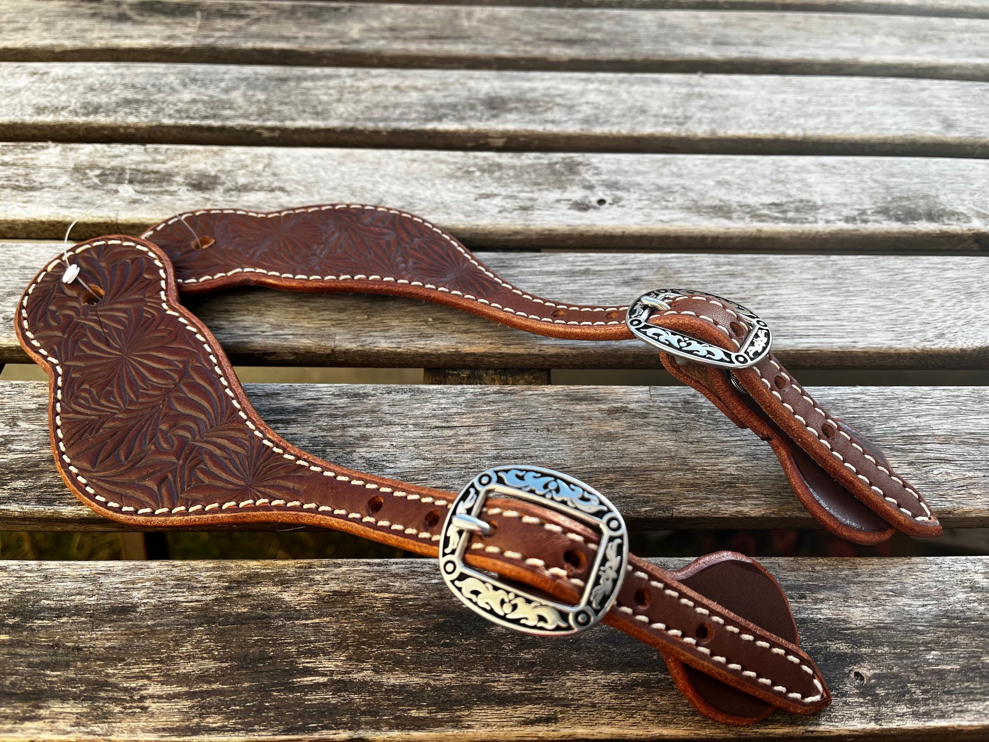 Lanières d'éperons tooling florale et boucles gravées