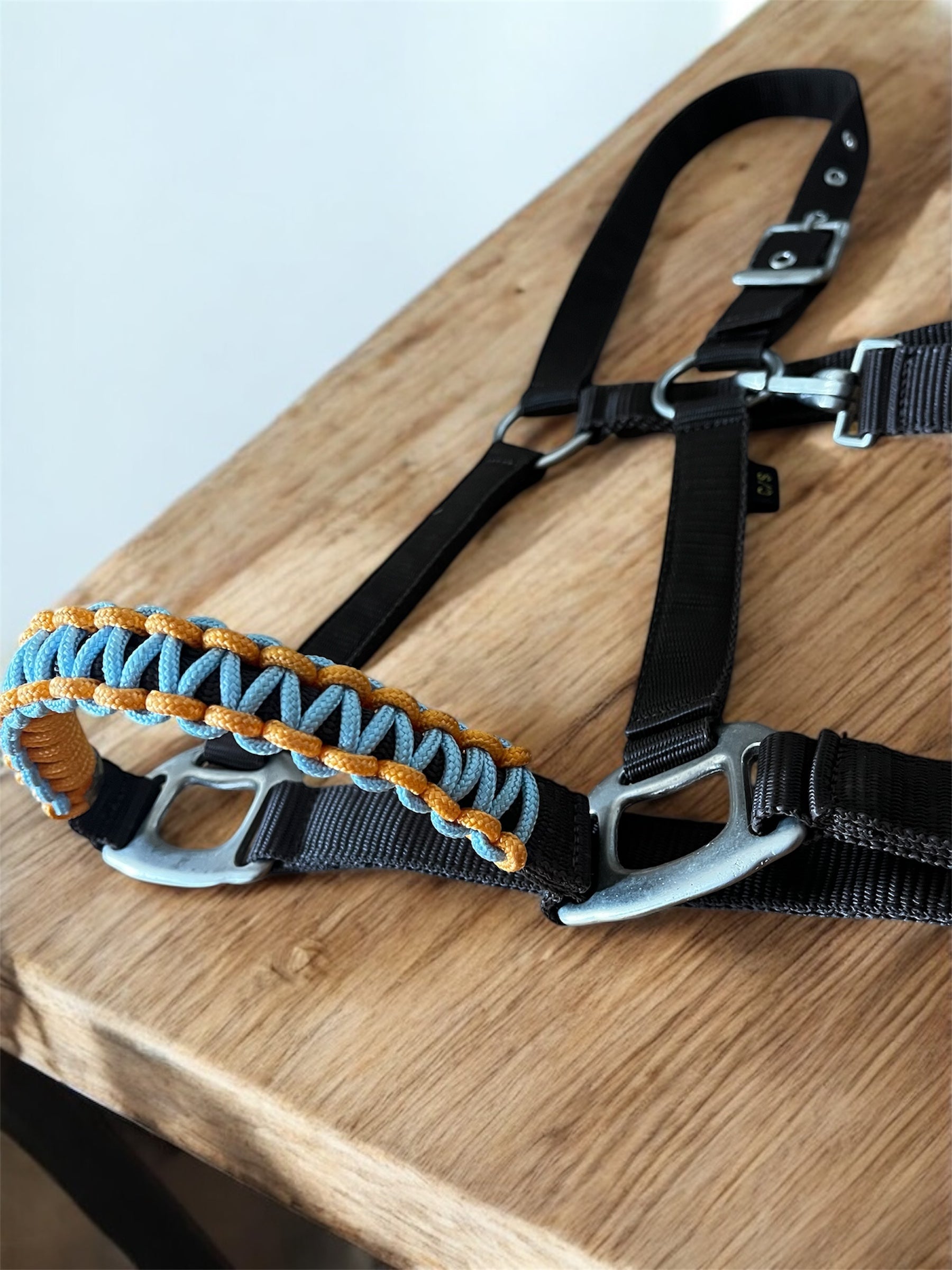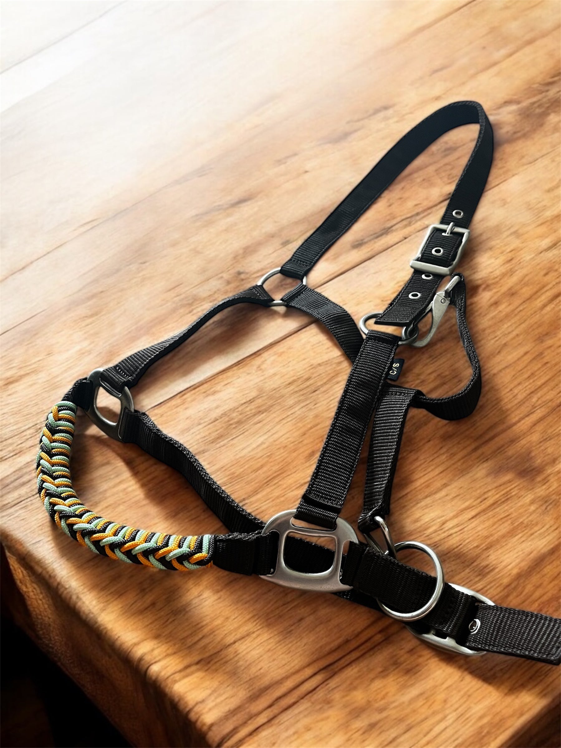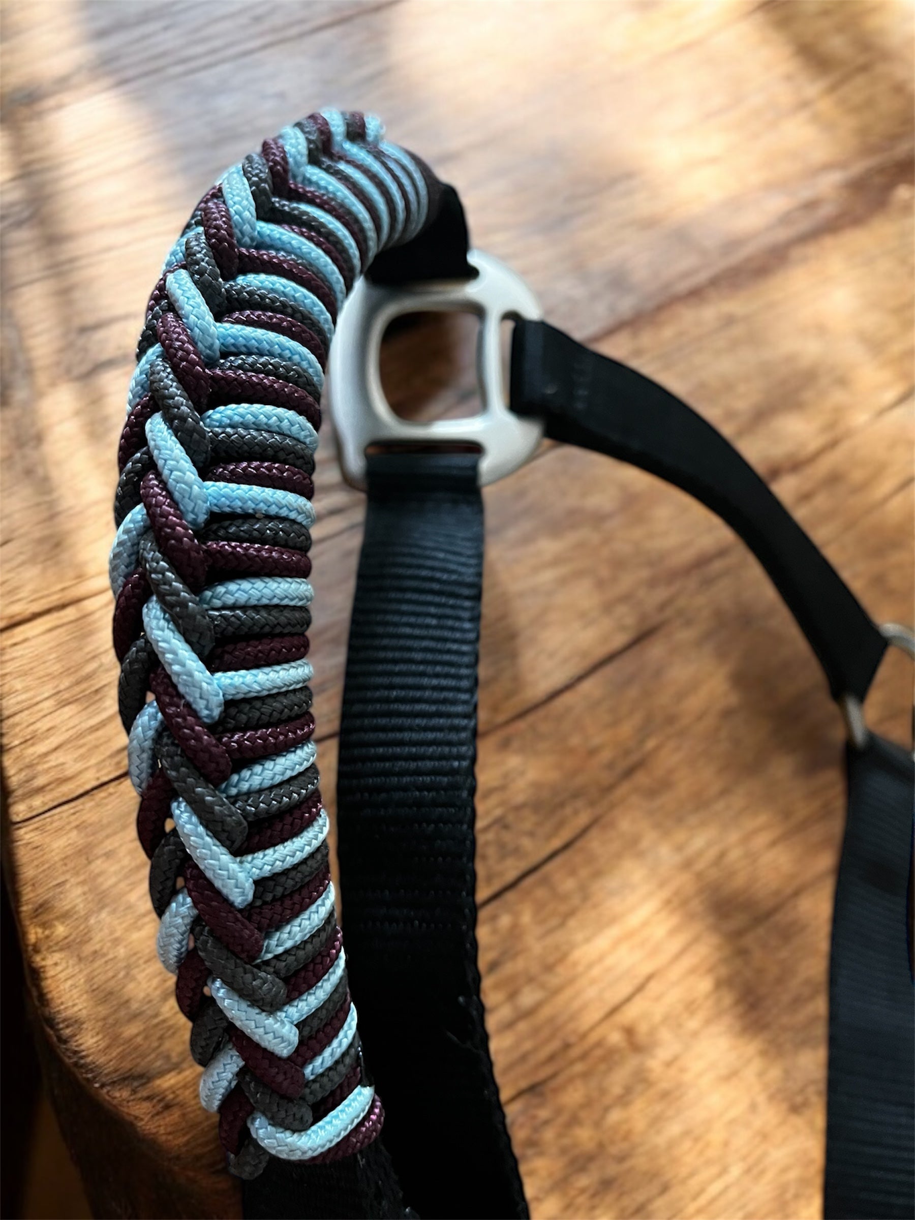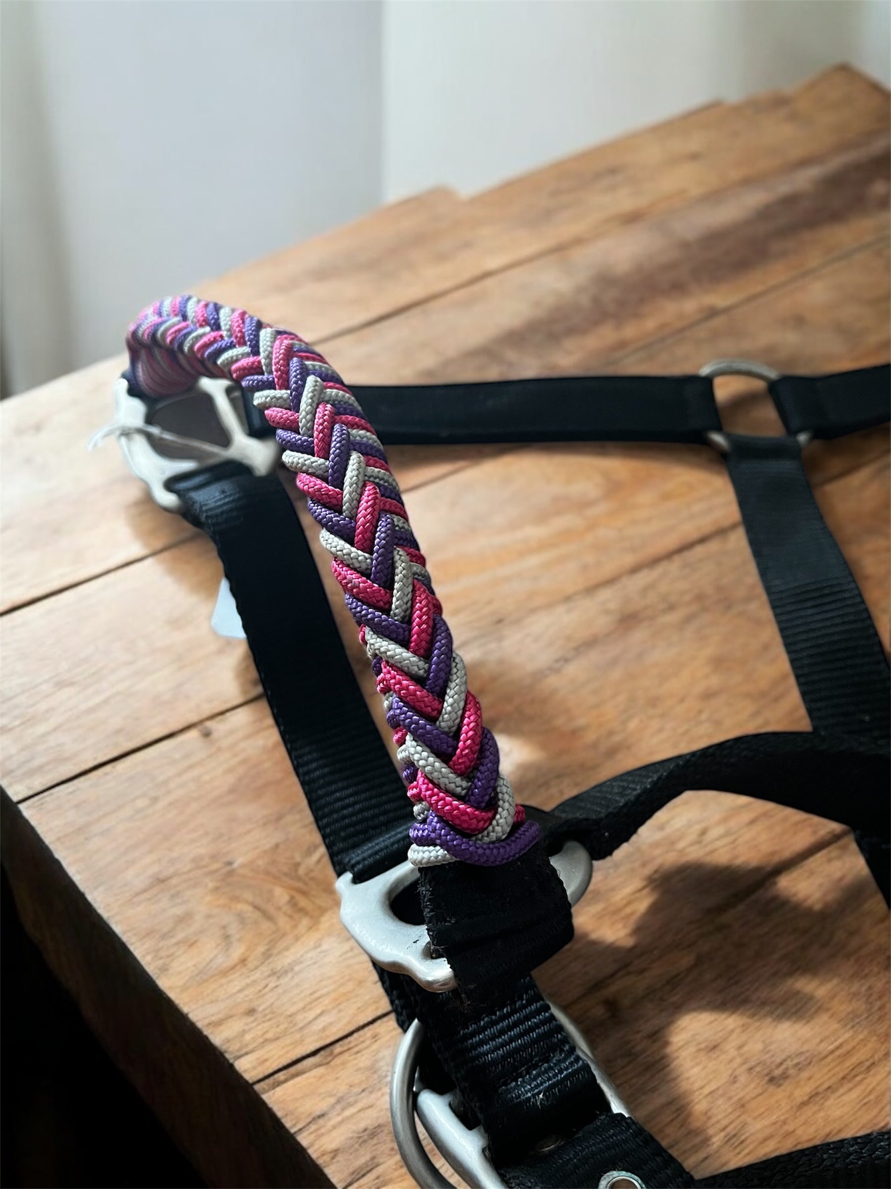 Tous les licols que vous retrouves ici sont uniques car ils ont la muserolle de tressée à la main, il n’y en a pas 2 avec le même tressage ni les même couleurs !